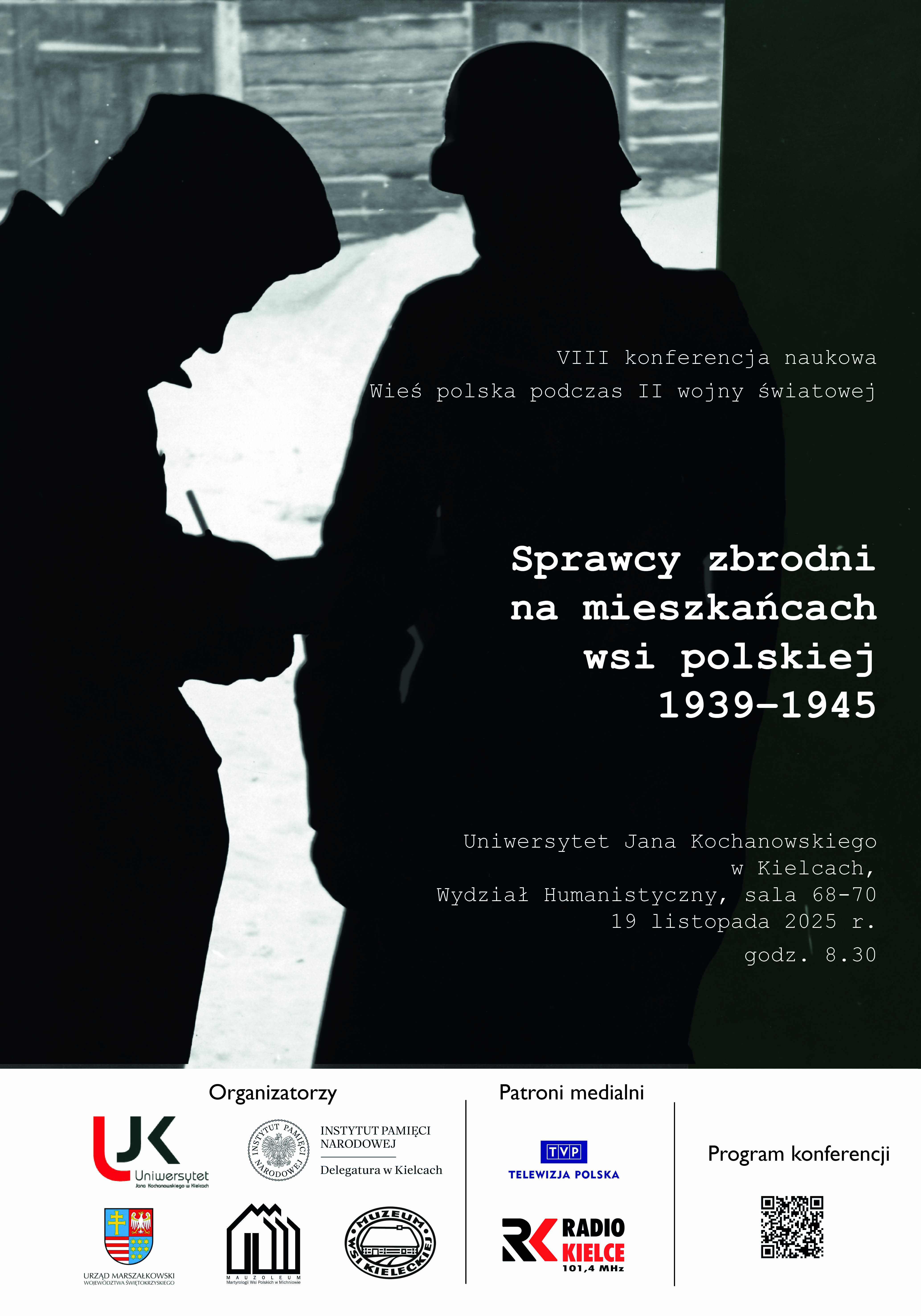 VIII konferencja naukowa „Wieś polska podczas II wojny światowej – Sprawcy zbrodni na mieszkańcach wsi polskiej 1939–1945” odbędzie się 19 listopada 2025 roku w Instytucie Historii Uniwersytetu Jana Kochanowskiego w Kielcach. Poniżej prezentujemy program wydarzenia.