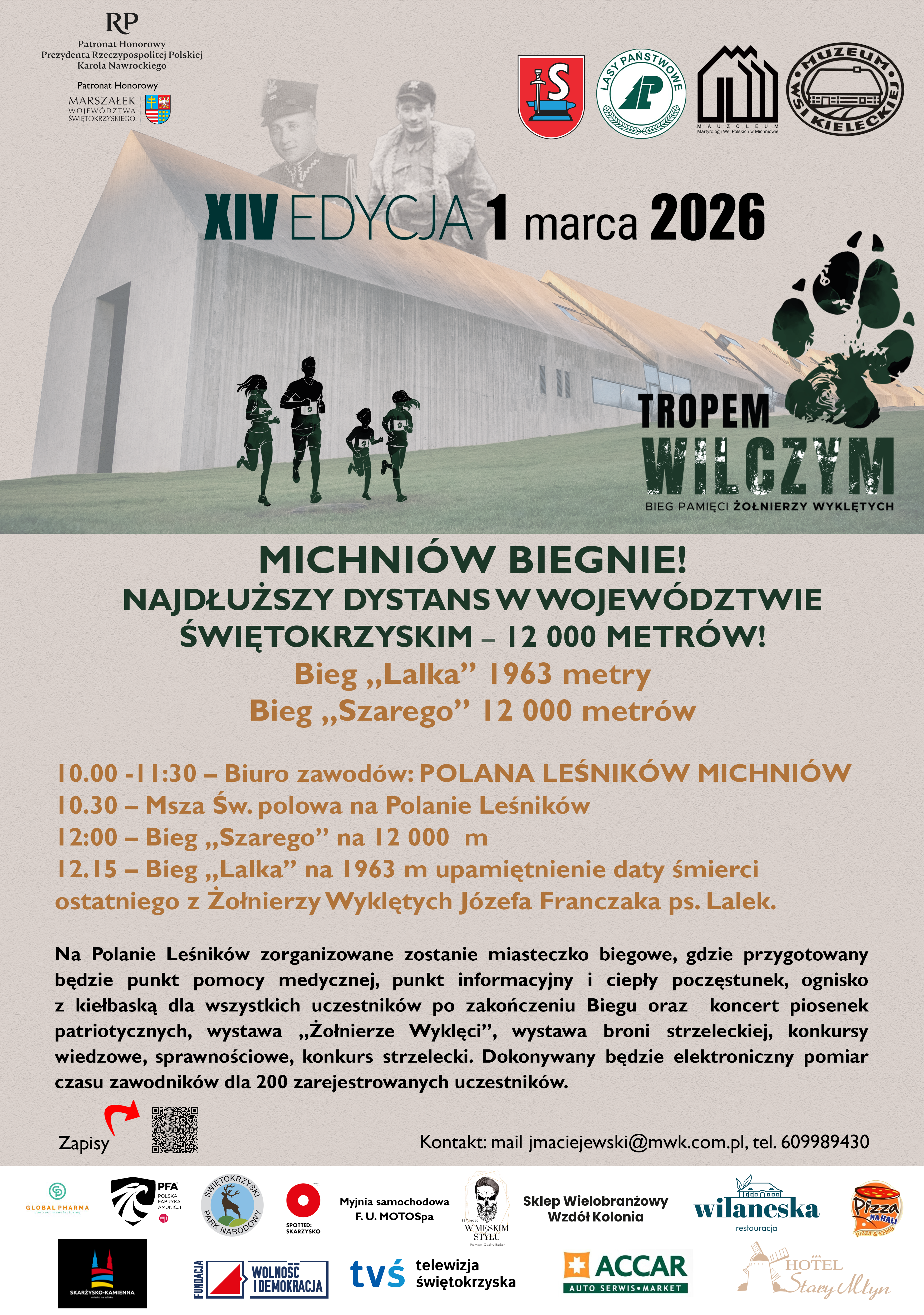 Zapraszamy na V edycję w Michniowie i XIV ogólnopolską Biegu Pamięci Żołnierzy Wyklętych "Tropem Wilczym"!![]()